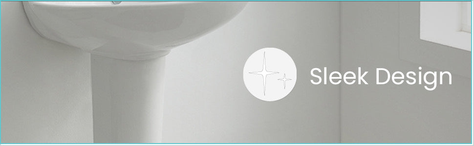PEDESTAL SINK: This practical wall mount sink includes a pedestal for additional support. The pedestal also conceals the sink drain.