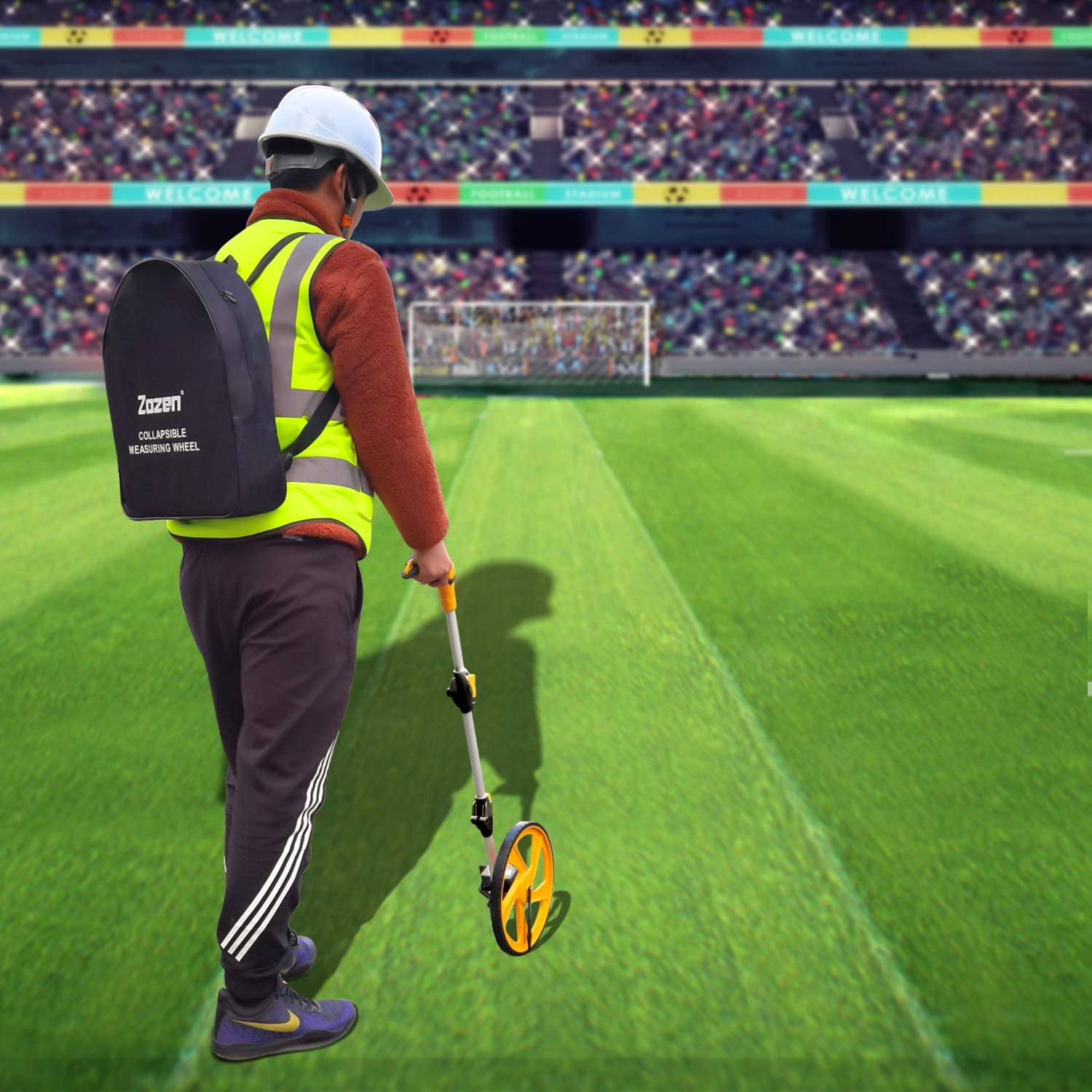 "Worksite Digital Display Measuring Wheel Measures to 32,800 Feet(9,999 Meters), includes Kickstand and Cloth Carrying Bag. The handle folds in tri and has a built-in carrying handle making it easy to transport and store in the Carrying Bag(included). Extremely accurate makes it extremely useful to measure the boundary lines of your property and neighborhood. Versatile enough to use on a variety of indoor and outdoor projects, this tool is ideal for real estate appraisers, law enforcement, construction or landscaping workers and homeowners alike. EASY TO USE: The measuring wheel is lightweight and ergonomic, making it portable and easy to use.Versatile enough to use on a variety of indoor and outdoor projects. SPECIFICATIONS: